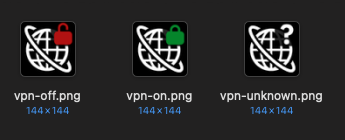 アイコン出したまま、メニューバーなどから VPN に繋いだり、切断したりしてみて、アイコンが切り替わるのをテストしてみるとよいです。